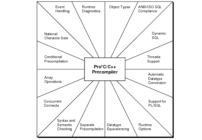 As Figure 1-2 shows, Pro*C/C++ offers many features and benefits, which help you to develop effective, reliable applications.
