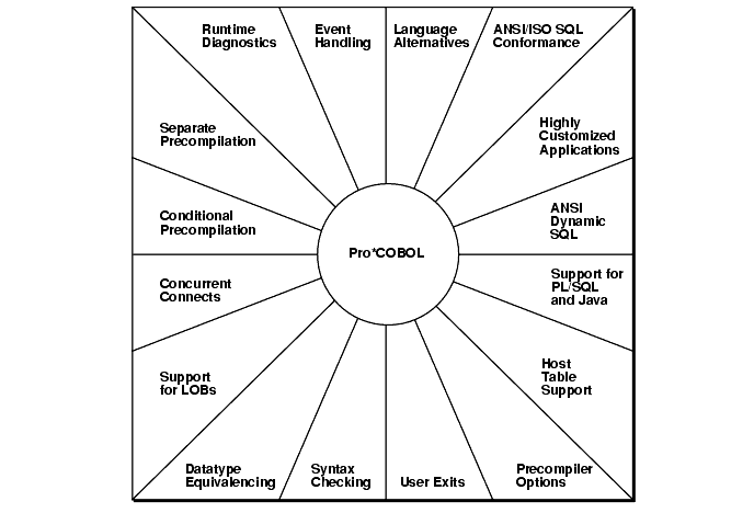 As Figure 1-2 shows, Pro*COBOL offers many features and benefits that help you to develop effective, reliable applications.