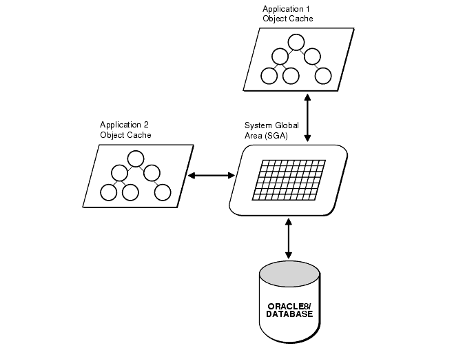 Note: Oracle does not support automatic cache coherency with the server's buffer cache or database. Automatic cache coherency refers to the mechanism by which the object cache refreshes local object copies when the corresponding objects have been modified in the server's buffer cache, and the object cache flushes the changes made to local object copies to the buffer cache before any direct access of corresponding objects in the server. Direct access includes using SQL, triggers, or stored procedures to read or modify objects in the server.