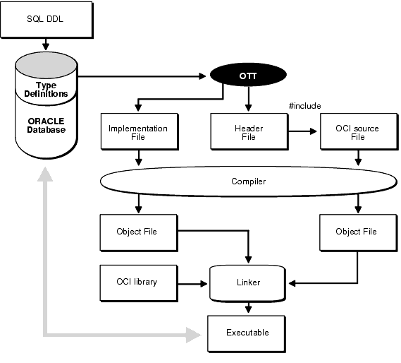 The first step in using the OTT is to create object types or named collection types and store them in the database. This is accomplished through the use of the SQL CREATE TYPE statement.