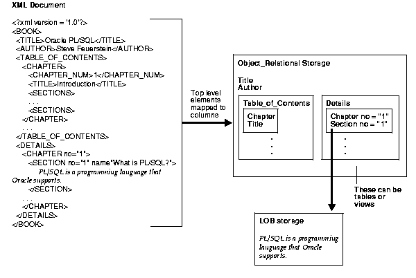 For instance, when mapping a text document, such as a book, in XML, you may not want every single element to be exploded and stored as object-relational. Storing the font information and paragraph information for such documents in an object-relational format, does not serve any useful purpose with respect to querying.