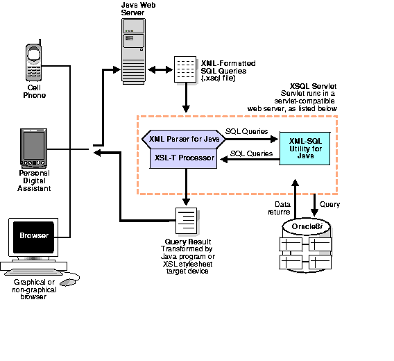 XML is increasingly used to enable customized presentation of data for different browsers, devices, and users. By using XML documents along with XSL stylesheets on either the client, middle-tier, or server, you can transform, organize, and present XML data tailored to individual users for a variety of client devices, including the following: