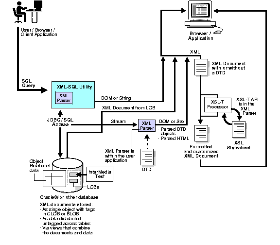 In the PL/SQL environment, when a user or client or application sends a query (SQL), there are two possible ways of processing the query using the Oracle XML components: