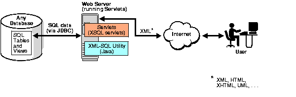 The Java version of XSU can also be run in the web server itself, as long as the web server supports Java servlets. XSU can be directly called by Java servlets and the XML can be generated and put back from the web server itself. The XSQL servlet is a standard servlet provided by Oracle which calls the utility to generate and save XML data. If this is the primary intent for using this product, then consider using the XSQL servlet, as it eliminates a lot of servlet coding and provides a simpler template approach for XML processing from the web server.
