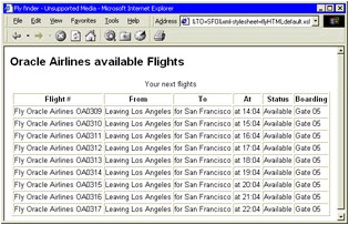 Customizing Presentation with XML and XSQL: Flight Finder, 6 of 8