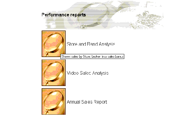 Now the appearance of the User Interface is completely different, as it takes on a more graphical look and feel. Instead of text links there are graphical buttons for running the reports, each with a dynamic `tool tip' that pops up when you position the mouse over the button.