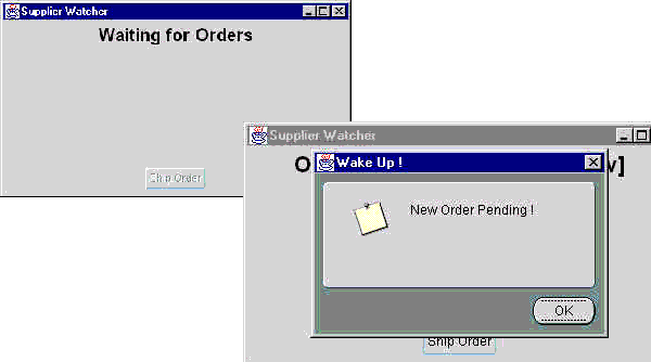 Figure 13-21 The Supplier Application Alerts Supplier of Pending Order: "Wake Up!"