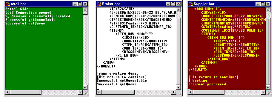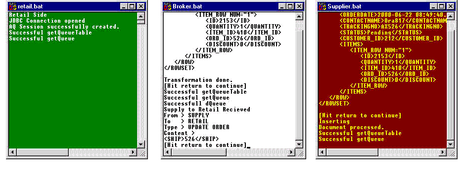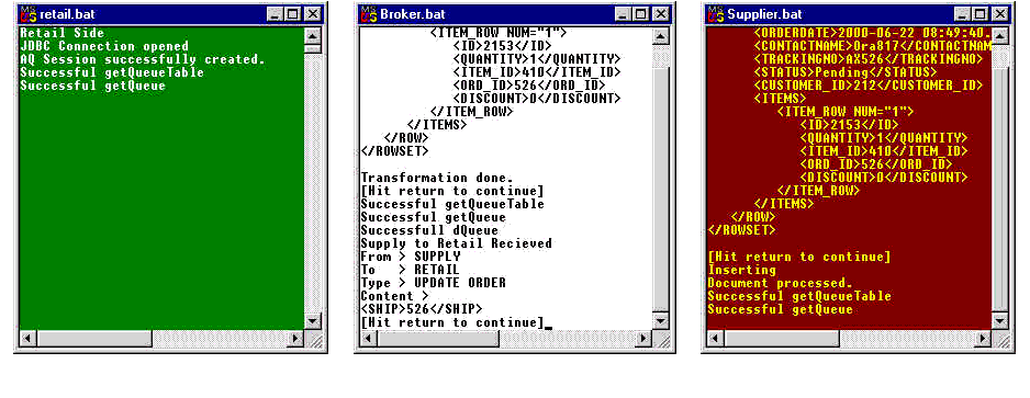 Figure 13-22 [Supplier]: retail.bat, broker.bat, and supplier.bat Consoles: After Clicking OK to Wake Up