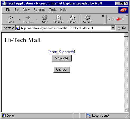 The Retailer selects "Go On", then validates the order by selecting "Validate". See Figure 13-15 and Figure 13-16.