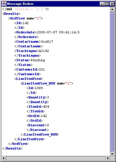 Figure 13-19 Sample XML Document Output From AQ Broker-Transformer