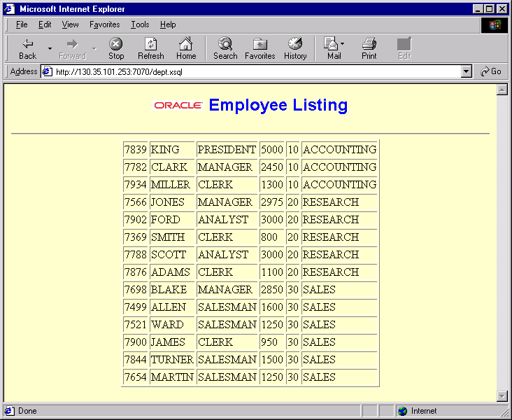 Figure 14-6 is an example output displayed by applying an XSL stylesheet to the employee listing.