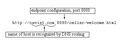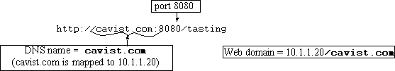 When a URL, such as http://cavist.com:8080/cellar/welcome.html, is sent to a single-domain, the request accesses the Web service listening on port 8080, on the host named cavist.com.