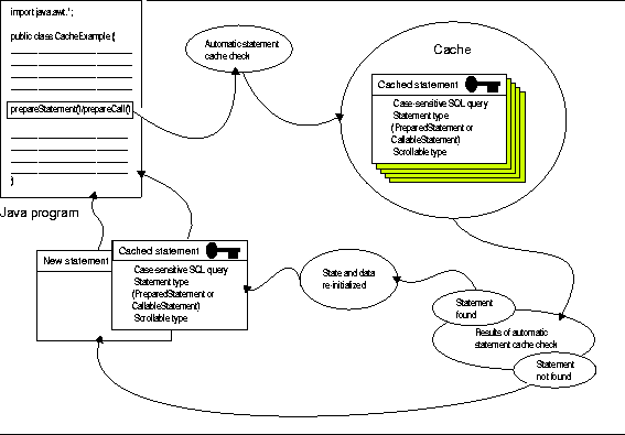 When you enable statement caching, explicit statement caching, which is based on a user-defined key, enables you to cache and retrieve selected prepared, callable, and plain statements. The key is an arbitrary Java string that you provide.