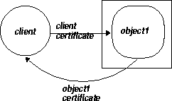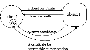 Server-side authentication takes place when the server provides certificates for authentication to the client. When requested, the server will authenticate itself to the client, also known as server-side authentication, by providing certificates to the client. The SSL layer authenticates both peers during the connection handshake. The client requests server-side authentication by setting any of the SSL_* values in the JNDI property. See "Using JNDI for Authentication" for more information on these JNDI values.