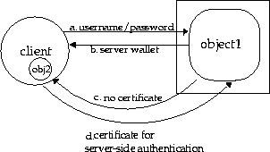 public static void main (String[] args) throws Exception { String serviceURL = args [0]; String objectName = args [1]; String user = args [2]; String password = args [3]; //set up username/password for authentication to database. Set up //security to be SSL_LOGIN - login authentication for client and server-side //authentication. Hashtable env = new Hashtable (); env.put (Context.URL_PKG_PREFIXES, "oracle.aurora.jndi"); env.put (Context.SECURITY_PRINCIPAL,user); env.put (Context.SECURITY_CREDENTIALS,password); env.put (Context.SECURITY_AUTHENTICATION, ServiceCtx.SSL_LOGIN); Context ic = new InitialContext (env); // Get the server object before preparing the client object. // You have to do it in this order to get the ORB initialized correctly Server server = (Server)ic.lookup (serviceURL + objectName); // Create the client object and export it to the ORB in the client // First, set up the ORB properties for the callback object java.util.Properties props = new java.util.Properties(); props.put("ORBservices", "oracle.aurora.ssl"); // Initialize the ORB. com.visigenic.vbroker.orb.ORB orb = (com.visigenic.vbroker.orb.ORB)oracle.aurora.jndi.orb_dep.Orb.init(args, props);// Get the certificate manager AuroraCertificateManager certificateManager =