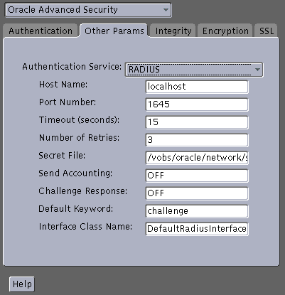 SQLNET.RADIUS_AUTHENTICATION_INTERFACE=(name of interface including the package name delimited by "/" for ".")
