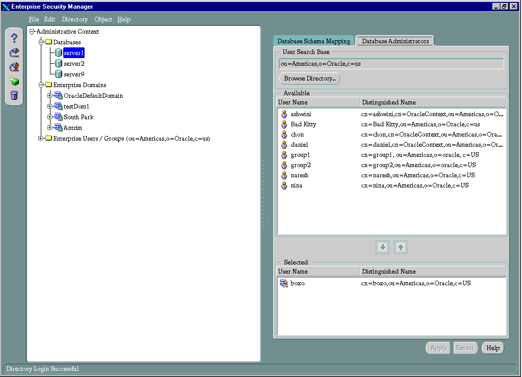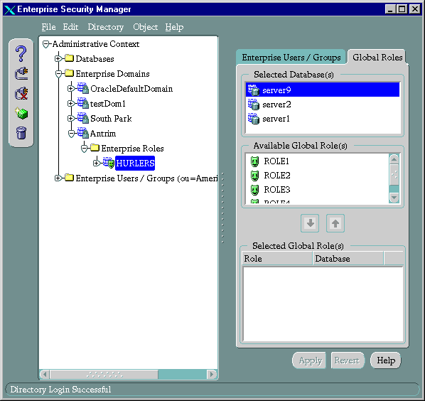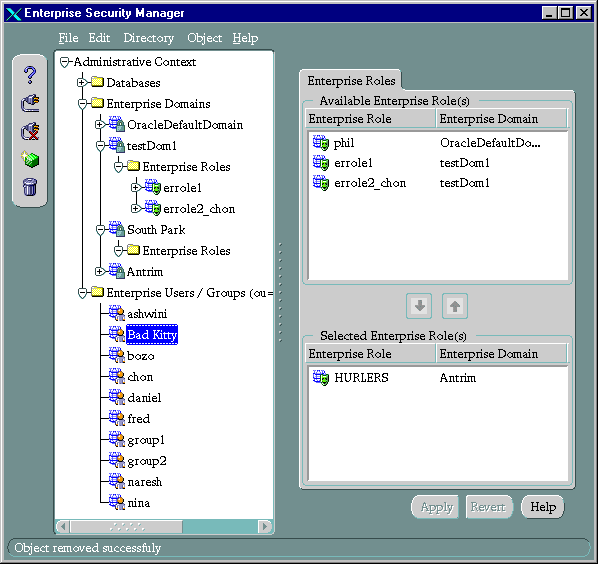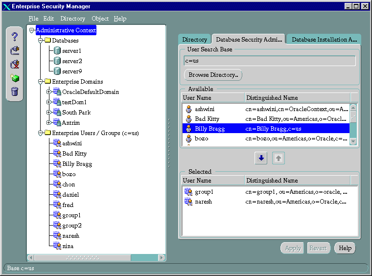 Oracle Enterprise Security Manager is an administration tool that provides a graphical user interface to manage enterprise users, enterprise domains, databases, and enterprise roles that are held in a directory server.