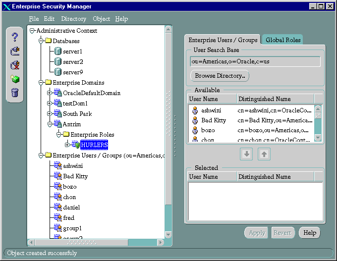 Apply; the enterprise users appear under the Enterprise Role node in the navigator pane of the window.