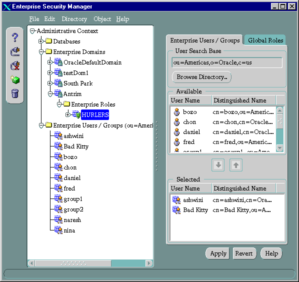 The following instructions assume you are running Oracle Enterprise Manager and have invoked the Oracle Enterprise Security Manager.