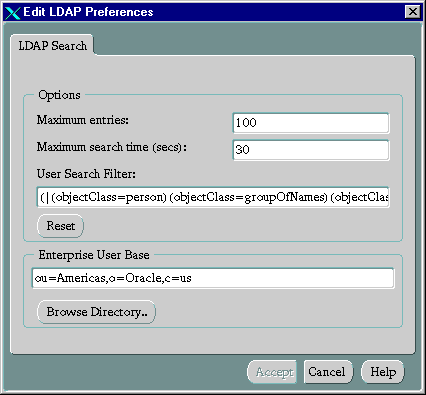 Edit > Preferences; the Edit LDAP Preferences window appears: