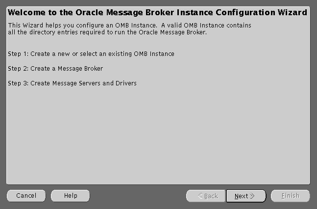 Figure 11-2 shows the Oracle Message Broker Manager opening window.