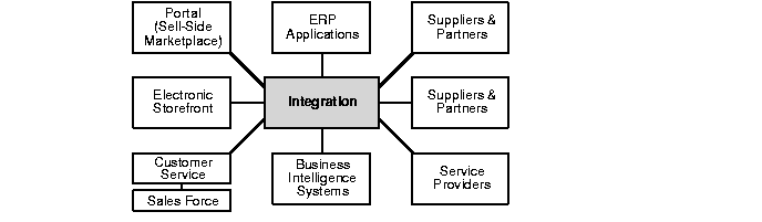 An e-business requires a variety of Internet-enabled applications including e-commerce Web sites, portals, supply-chain management, procurement management, online marketplaces, customer relationship management, and enterprise resource planning. All these applications must be integrated with one another to make an enterprise an e-business.
