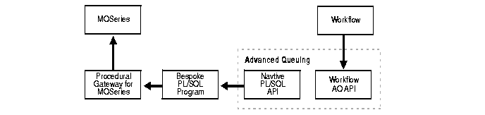 One of the applications included in a hub-and-spoke integration solution has a ready-made message-based interface that places messages in a set of MQSeries queues and that expects business events in the form of MQSeries messages. The application interface is written in C and creates and consumes messages using the native MQSeries API. The objective is to transport messages from MQSeries to AQ and from AQ to MQSeries.