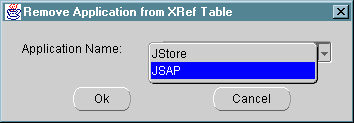 To remove applications from the Cross Reference Table, select a Cross Reference Table in the project tree, right-click the Cross Reference Table, and click Remove App. The Remove Application from XRef Table window is displayed: (Figure 2-14)
