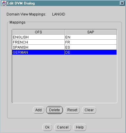 To delete or clear the values in the mappings table, select a Domain Value Mapping, and click Delete.