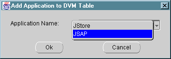 To add applications to Domain Value Mappings, select a Domain Value Mapping in the project tree, right-click the Domain Value Mapping, click Add App. The Add Application to DVM Table dialog is displayed. (Figure 2-16)