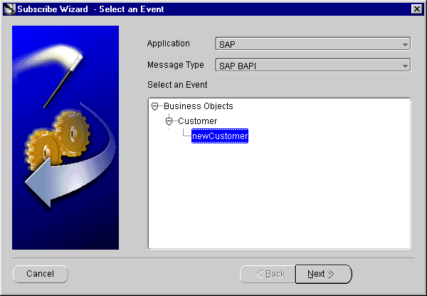 To create a subscribe event in an application, click Event in the iStudio main menu panel, then click Subscribe in the pull-down menu. The Subscribe Wizard is displayed: (Figure 2-25)