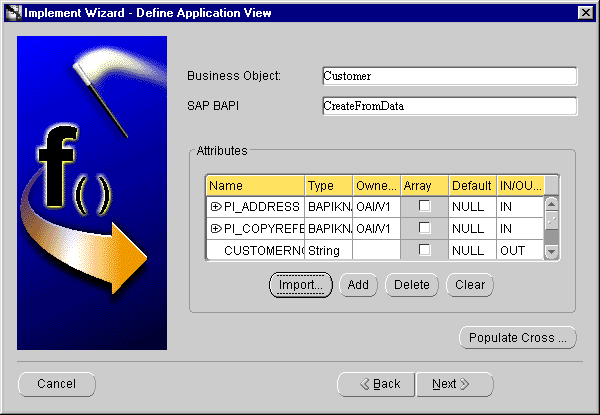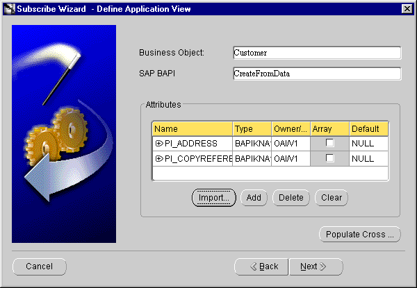 To populate the Cross Reference Tables, you define a Returned Application Object which is the value returned by subscribe/implement code for populating the Cross Reference Table. The Returned Application Object is defined in the wizard.
