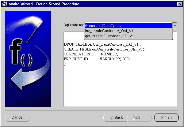 To create an invoking procedure in an application, click Procedure in the iStudio main menu panel, then click Invoke in the pull-down menu. The Invoke Wizard is displayed: (Figure 2-30)