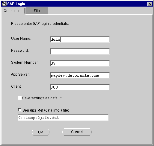 Refer to the section Importing Attribute Information to Import, Add, Delete, Clear the attributes. If you are importing BAPI information the SAP log in window is displayed: (Figure 2-38)