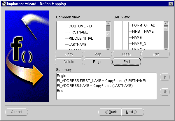 Each application's view of data may be different than the common view. In these situations the developer should specify how fields in the application view map to fields in the common view. This mapping may also involve simple transformations on the fields being mapped.