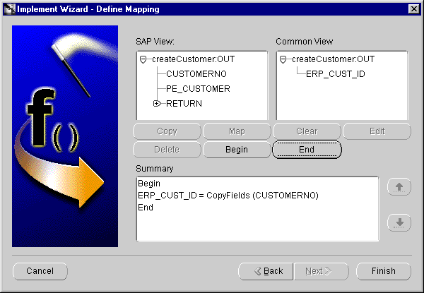 Mapping can either involve copying the individual fields, or simple shape-change transformations. You map the common view return arguments to the application view return arguments in this step.