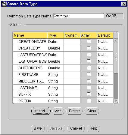 Click Save to save and exit, Save As to save the Common Data Type as a different version, Cancel to exit without saving, or Help to display the help window.