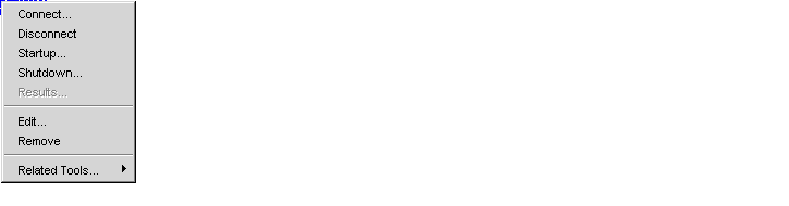 Right-clicking on a Oracle Parallel Server database displays the Oracle Parallel Server right-mouse menu: