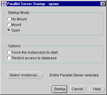 Once all Oracle Parallel Server instances are started, the Oracle Parallel Server database is considered to be up.