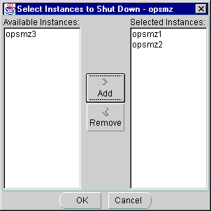 The Select Instances to Stop dialog box appears: