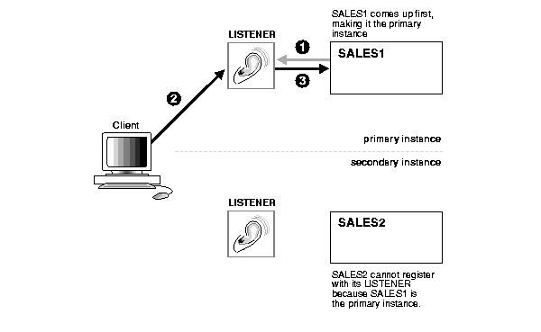 The Primary/Secondary Instance feature works in both dedicated server and Multi-Threaded Server environments. However, it functions differently in each as described under the following headings.