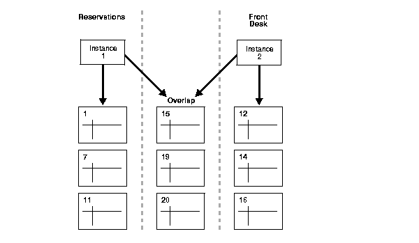 With this approach, ensure that each application's tables and indexes are stored such that PCM locks do not cover data blocks used by both applications. Otherwise the benefit of partitioning is lost. To do this, store each application's table and index data in separate data files.