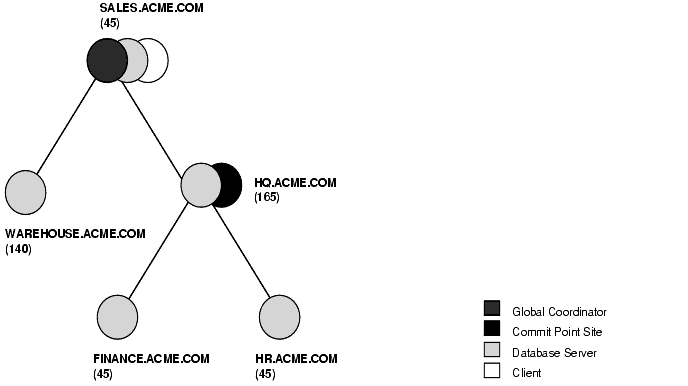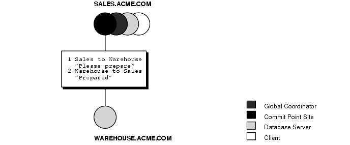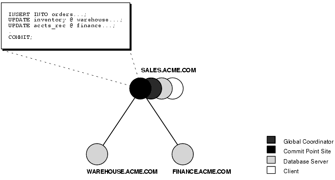 Figure 4-3 illustrates an example of distributed system, with SALES serving as the commit point site: