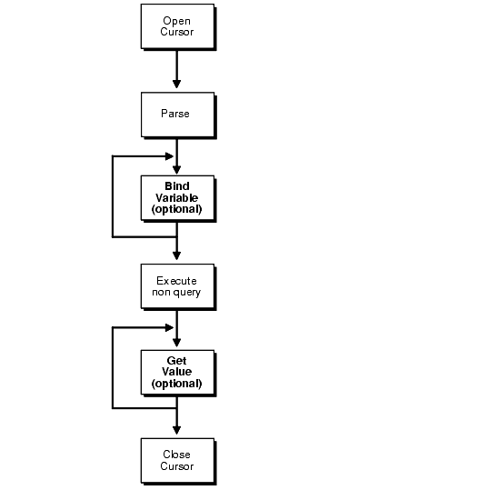 Figure 9-1 shows the flow diagram for executing non-queries with bind variables.