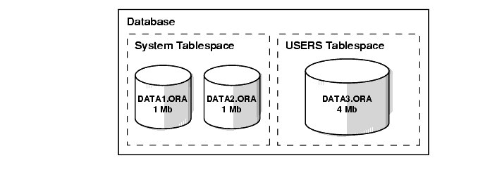 The relationship among databases, tablespaces, and datafiles (datafiles are described in the next section) is illustrated in Figure 1-1.