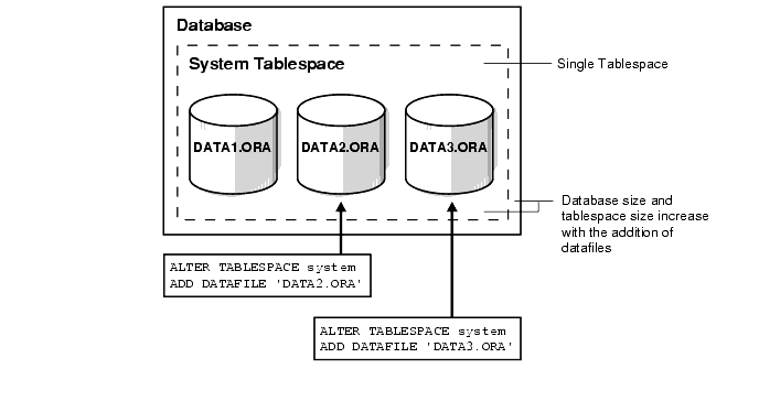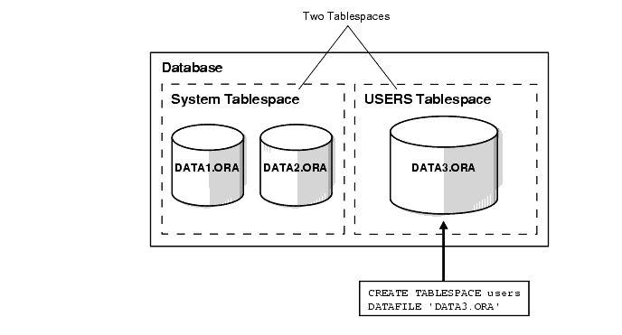 Alternatively, you can create a new tablespace (which contains at least one additional datafile) to increase the size of a database. Figure 3-3 illustrates this.