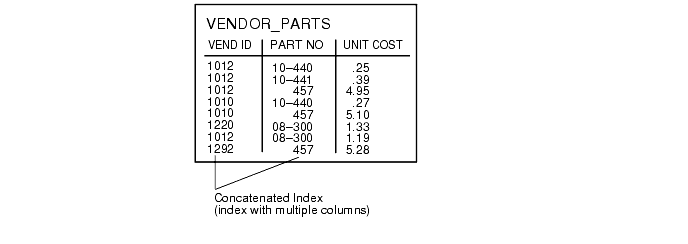 In some cases, retrieval performance can be improved by defining a concatenated index on multiple columns of the inverted index table. The concatenated index allows for index-organized retrieval when the occurrence data is not required, that is, for Boolean queries. In such cases, the rowid fetches of inverted table records is avoided. When the query involves a proximity predicate (for example, the phrase "Oracle Corporation"), the concatenated index approach still requires the inverted index table to be accessed. Furthermore, building and maintaining a concatenated index is much more time-consuming than using a single column index on the token. Also, the storage overhead is higher because multiple columns of the key (token) are duplicated in the table and the index.