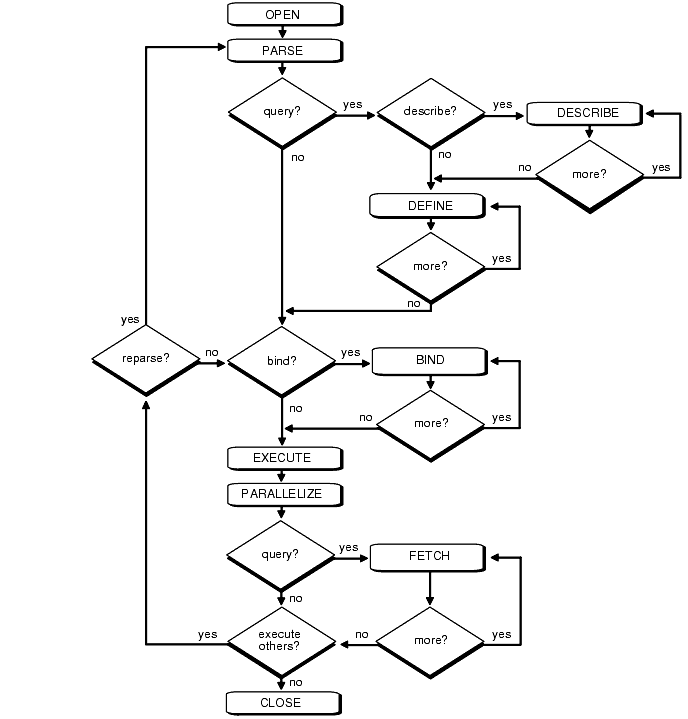 Figure 15-1 outlines the stages commonly used to process and execute a SQL statement. In some cases, Oracle might execute these stages in a slightly different order. For example, the DEFINE stage could occur just before the FETCH stage, depending on how you wrote your code.