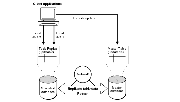 A snapshot contains a complete or partial copy of a target master table from a single point in time. A snapshot may be read-only or updateable.