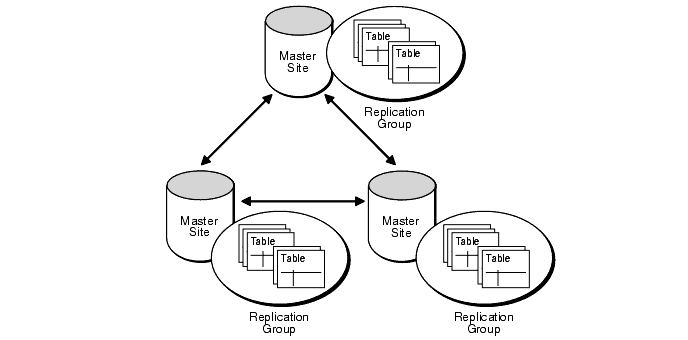 Applications can update any replicated table at any site in a multimaster configuration. Oracle database servers operating as master sites in a multimaster environment automatically work to converge the data of all table replicas and to ensure global transaction consistency and data integrity.
